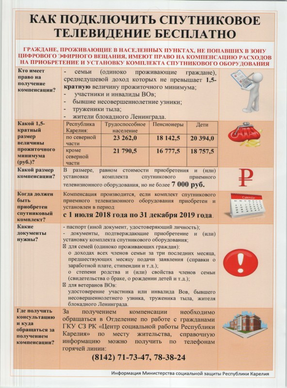Оказание помощи в форме компенсации расходов на приобретение и установку комплекта спутникового спутникового приемного телевизионного оборудования предусмотрена: