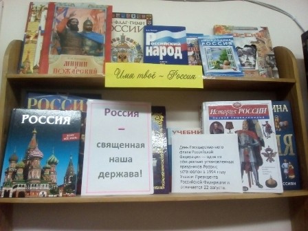 Так же вниманию читателей представлена выставка-просмотр «Россия – священная наша держава», на которой можно познакомиться с книгами о нашей Родине, о великих людях о народах, которые населяют нашу необъятную страну и о ее символике.